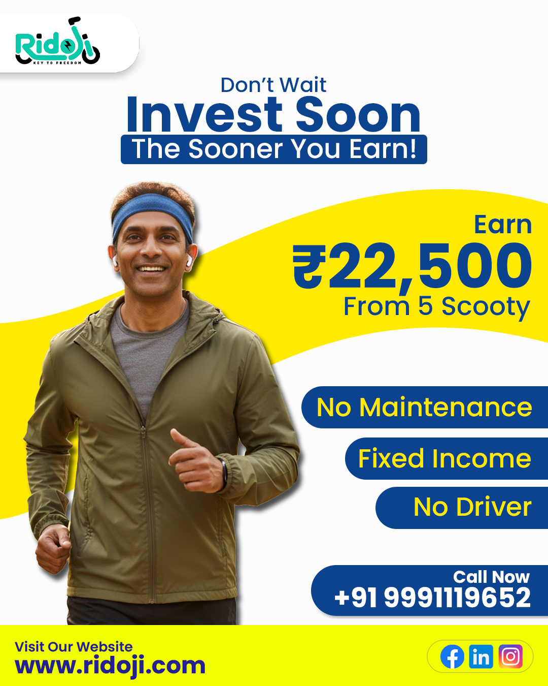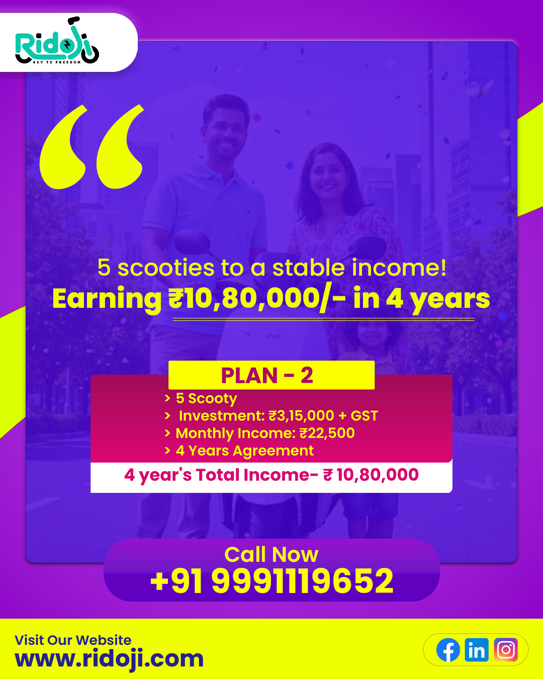 India’s EV rental market is exploding, driven by surging demand for last-mile delivery electric scooters, sustainable mobility solutions, and zero-emission fleets. Ridoji transforms this momentum into a unique investment opportunity that is safe, scalable, and highly profitable.